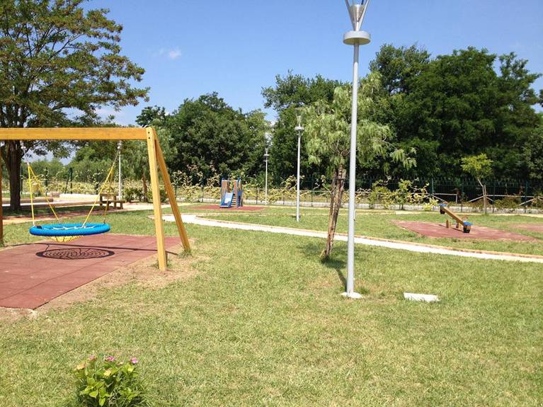 vari giochi per bambini, una zona adibita a picnic, panchine e un vasto
